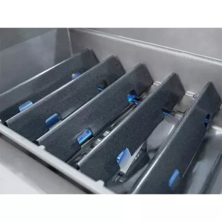 - Les graisses résiduelles s’écoulent directement vers le bac de récupération coulissant