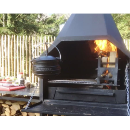 Vous aurez aussi la possibilité de varier les plaisirs en suspendant une marmite à la potence prévue à cet effet (incluse avec le barbecue) ou en utilisant un wok (option). Le compartiment avec porte situé sous le foyer principal pourra faire office de four!